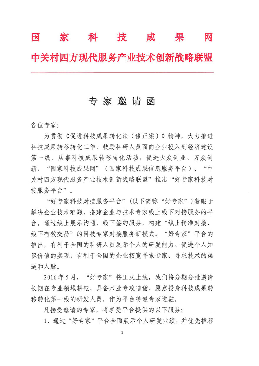 邀请| “好专家”科技对接服务平台专家邀请函