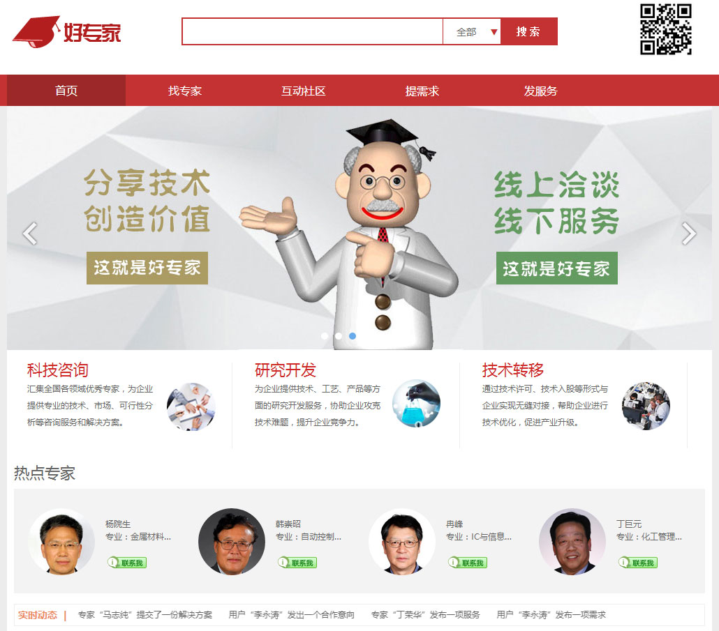 “好专家对接平台”目标建成国内最大的科技专家对接服务平台。