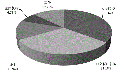 | 项目名称 | 合计 | 独立科研机构 | 大专院校 | 企业 | 医疗机构 | 其他 | 比例 |