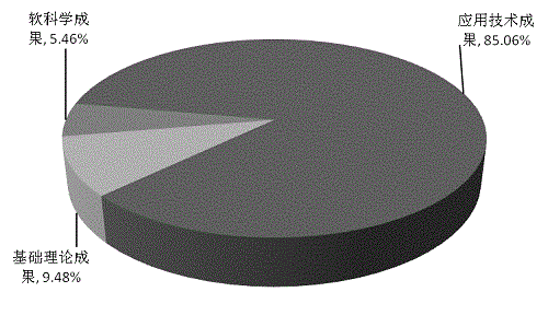 (一)应用技术成果所占比例较高。2014年度全省登记的696项科技成果中,应用技术成果592项、基础理论成果66项、软科学成果38项,分别占登记科技成果总数的85.06%,9.48%和5.46%,应用技术成果所占比例较高,体现了我省高校、科研单位成果在省内转化高的特点,但同时也反映出在软科学、基础理论研究方面投入不足,有待于进一步加强。