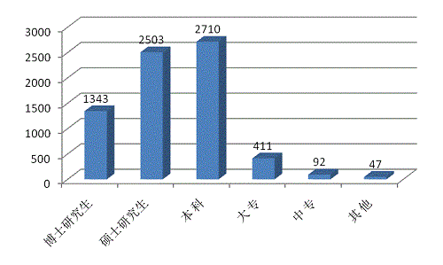 图3  2014年度吉林省登记科技成果完成人员文化程度分布