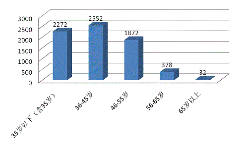 图4  2014年度吉林省登记科技成果完成人员年龄分布