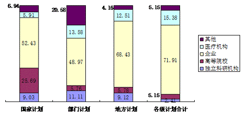 |   | 合计 | 独立科研机构 | 高等 院校 | 企业 | 医疗 机构 | 其他 |