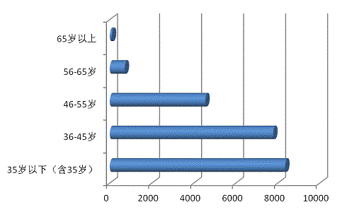 从年龄结构看,我省登记成果的科研队伍呈现出年轻化趋势。45岁以下的科研人员为16108人次,占总登记人数的75.10%,其中,35岁以下科研人员为8337人次,占总登记人数的38.80%。