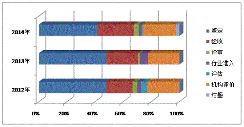 表2  湖南省2012-2014年科技成果评价方式构成