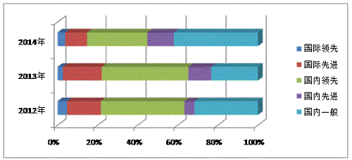 | 国内领先 | 215 | 41.75 | 382 | 43.31 | 258 | 30.08 |