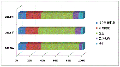 表6  湖南省2012-2014年科技成果完成单位构成