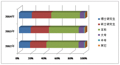 | 学历 | 2012年 | 2013年 | 2014年 | |||