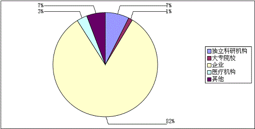 | 行业分布 | 独立科研机构 | 大专院校 | 企业 | 医疗机构 | 其他 | 合计 |