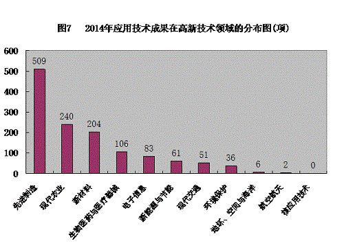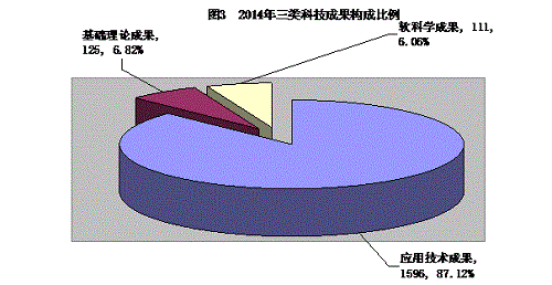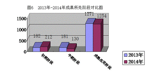表6   2014年各类成果完成单位的应用技术成果评价水平构成表(%)