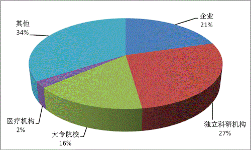 2014年度登记的42项基础理论成果中,按第一完成单位统计,企业3项(其中科研机构转制企业完成的2项),独立科研机构7项,大专院校17项,医疗机构8项,其他7项。大专院校基础理论成果占登记总数的40%,成为基础理论成果的主要来源。