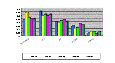 | 合    计 | 1376 | 100.00 | 1461 | 100.00 | 1472 | 100.00 | 1497 | 100.00 | 1612 | 100.00 |