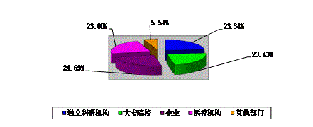 | 独立科研机构 | 大专院校 | 企 业 | 医疗机构 | 其 他 | 合 计 |
