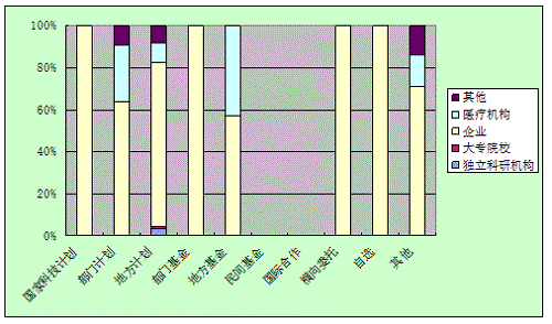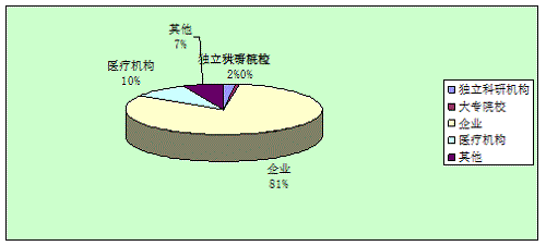 | 独立科研机构 | 大专院校 | 企业 | 医疗机构 | 其他 | 合计 |