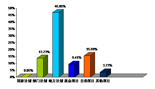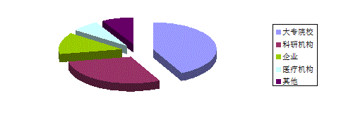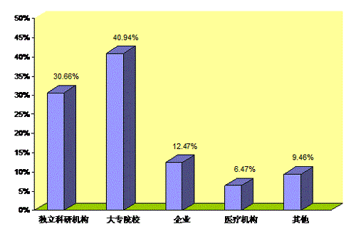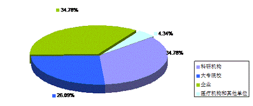 | 合计 | 独立科研机构 | 大专院校 | 企业 | 医疗机构 | 其它 | 比例(%) |