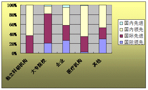 | 成果水平 | 独立科研机构 | 大专院校 | 企业 | 医疗机构 | 其他 | |||||