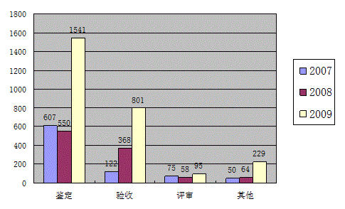 表1-1  浙江省2007-2009年科技成果评价方式构成