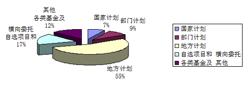 | 年度 | 总计 | 国家计划 | 部门计划 | 地方计划 | 自选项目和 横向委托 | 各类基金及 其他 | |||||