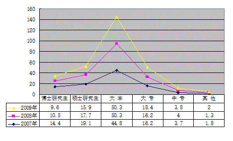 | 文化程度 | 2007年 | 2008年 | 2009年 | |||