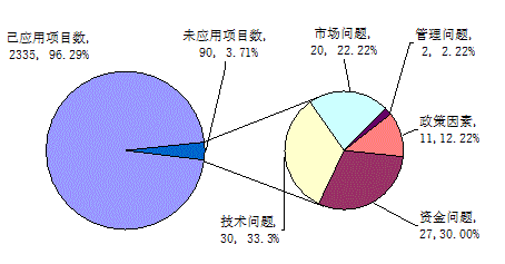 表2-1 浙江省2009年不同属性成果完成单位成果未应用或停用原因比例分布(%)
