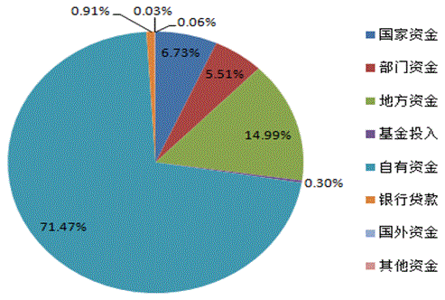 按登记成果经费实际投入情况看,国家投入6621万元,占总投入6.8%,比上年提高1.2个百分点。国家、部门和地方的资助资金流向独立研究机构、大专院校和企业的比值约为6:2:1,而上年该比值为8:1:1。资助资金对企业而言,仅体现了政府的支持和导向作用,项目研发经费实际投入主要以自有资金为主。2016年企业的自有资金占企业的项目研发经费比为97.7%,比上年增加了4.3个百分点。