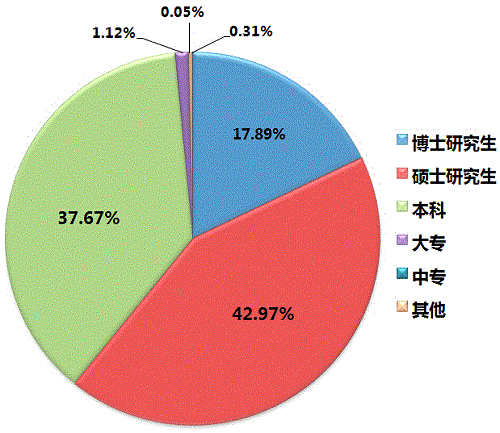 在登记人员中,博士研究生1404人次,占全部人员17.89%;硕士研究生3372人次,占全部人员42.97%;本科生2956人次,占全部人员37.67%;大专生88人次,占全部人员的1.12%。从学历比例上看,硕士人员是质检科研的中坚力量。