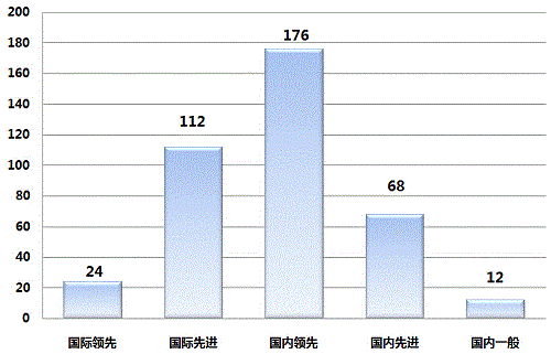 从成果水平上来看,2016年登记的质检科技成果中,国际领先的科技成果为24项,占可统计数据的6.12%;国际先进的科技成果为112项,占可统计数据的28.57%;国内领先的科技成果为176项,占可统计数据的44.90%;国内先进的科技成果为68项,占可统计数据的17.35%;国内一般的科技成果为12项,占可统计数据的3.06%。因此,国内领先成果,在质检科技成果中占比较大。