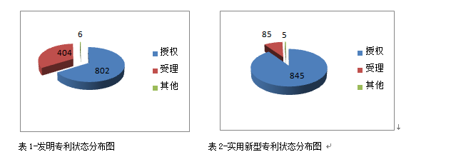 在2017年登记的1009项科技成果中,取得国外专利28项,其中发明专利27项,实用新型专利1项;中国专利2121项,其中发明专利1185项,实用新型专利934项,外观设计2项,取得计算机软件著作权保护350项,技术秘密211项。具体情况见表7。