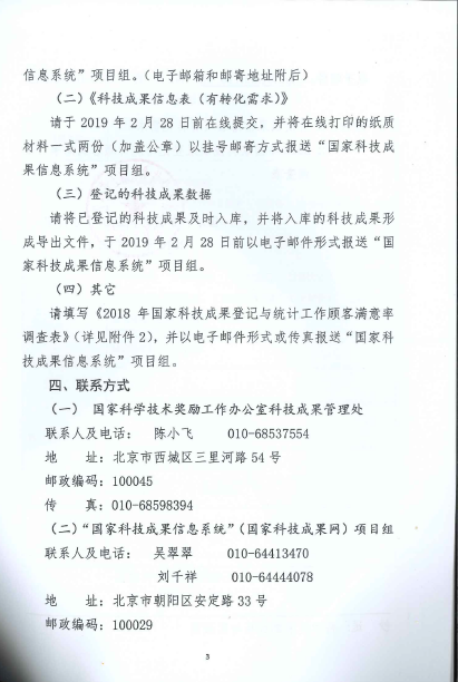 国家科学技术奖励工作办公室关于做好2018年度科技成果登记统计工作的函