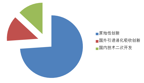 应用技术成果类项目中原始性创新项目为34项,国外引进消化吸收创新为6项,国内技术二次开发为6项,分别占项目总数的73.91%、13.04%和13.04%。具体情况见图8。