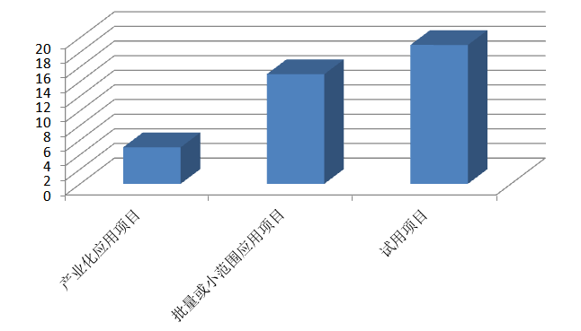 应用技术成果类项目中产业化应用项目、小批量或小范围应用项目和试用项目数分别为5项、15项和19项,占总数的12.82%、38.46%和48.72%。资金问题和政策因素是未应用项目的主要原因。