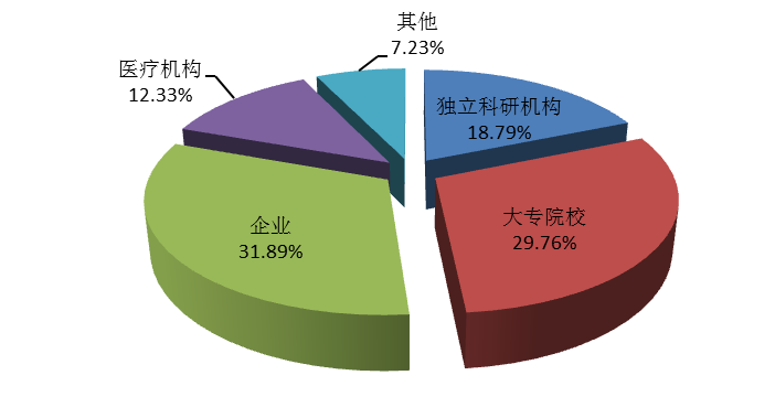 | 年度 | 成果总数 | 企业 | 大专院校 | 科研机构 | 医疗机构 | 其他 | |||||