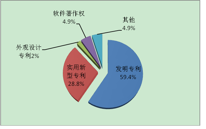 1051项科技成果中,拥有知识产权3653项,其中受理的发明及实用新型专利占全部知识产权的88.2%(见图2)。