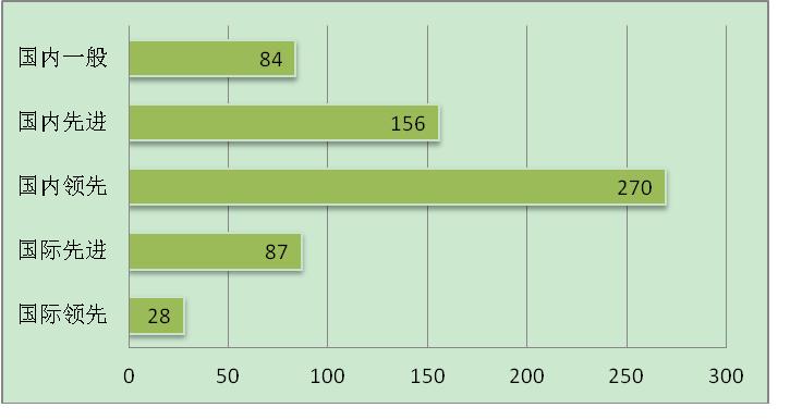 从成果水平来看,798项应用技术成果中有625项进行了评价,占比78.3%,同比增加25.9%。其中达到国际领先28项、国际先进87项、国内领先270项、国内先进156项,国内一般84项。处于国内领先及以上水平的成果占全部评价成果的86.6%,反映我市应用技术研究水平较高。