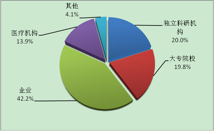 行业分布 | 合计 | 独立科研机构 | 大专院校 | 企业 | 医疗机构 | 其他 |