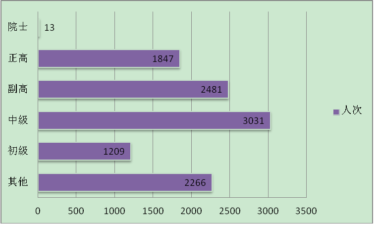 1051项科技成果的完成人共有10847人。从文化程度与职称来看,具有本科及以上学历的研发人员是成果完成的主力军,占全部完成人员的95%(见表6)。具有中级及以上职称的有7372人,占全部人员的68%(见图7)。从年龄结构来看,45岁以下科技工作人员8274名,占比为,76.3%,表明中青年科技人员是我市科技创新的中坚力量(见图8)。
