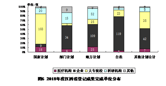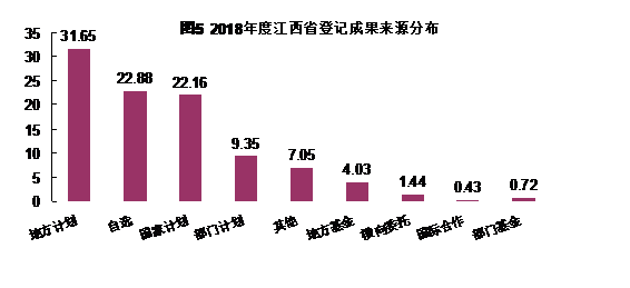 江西省高度重视科技成果管理工作,2018年在省科技厅党组的正确领导下,继续加强了科技成果评价、成果登记规范化工作,并加强了成果登记的宣传工作,介绍成果登记的重要性、如何成果登记及成果登记需要注意的问题等等,使得我省的成果登记项目有所增加。2018年江西省科技成果登记统计工作涉及11个地市,22个厅局级、行业办和大型企业单位,通过全省各级各部门的大力支持和广大科技人员的共同努力,圆满完成了本年度的成果登记工作。现根据2018年度江西省科技成果登记数据,从成果数量来源、成果分类、成果应用及转化情况、人才情况、机构情况等方面综合统计分析,报告如下: