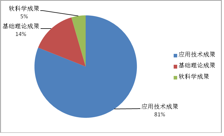 从上述数据来看,本年度科技成果工作主要呈现出以下两个特征:一是在登记的成果中仍然以应用技术类成果为主,这首先说明了科技成果的工作重心正有序向实效性、应用性方向倾斜,更加注重和突出科技成果所能产生的实际经济效益和社会效益,更加务求实效,这将有力推进成果转化及产业化的迅速发展。另一方面也说明,我区科技成果管理工作的规范化水平、科学化程度逐年提升。