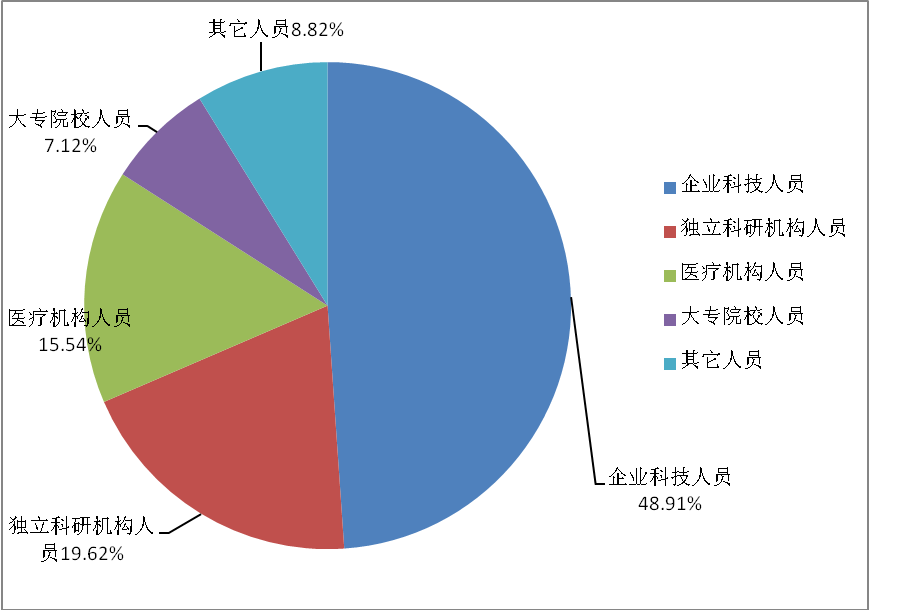 从统计结果看,企业和医疗机构是科研开发的主体(二者之和约占66.77%)。