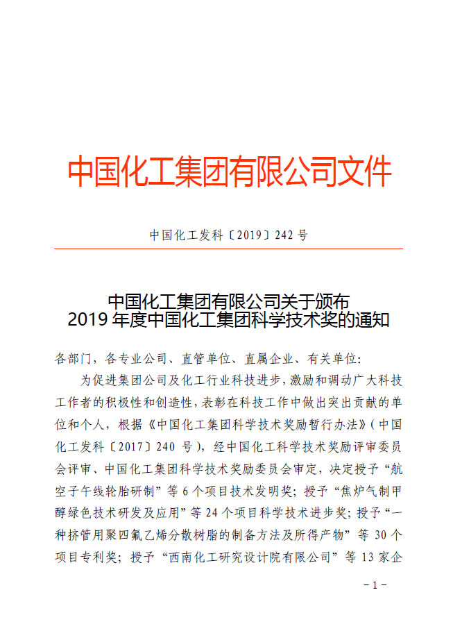 文件下载:中国化工集团有限公司关于颁布2019年度中国化工集团科学技术奖的通知.rar.rar