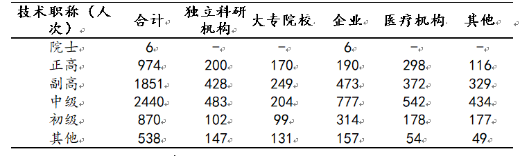 从各学历层次人员的分布看,博士研究生主要分布于独立科研机构和大专院校(占66.24%);硕士研究生在独立科研机构、大专院校、企业、医疗机构中的分布基本相同;本科主要分布于企业、医疗机构和其他单位,合计占比76.58%。