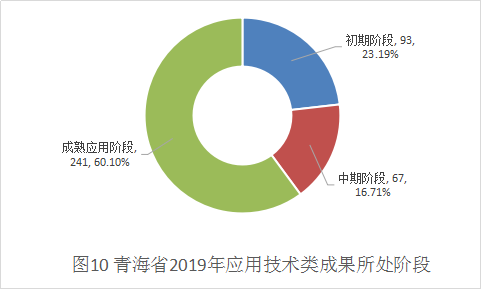 401项应用技术成果中,如图10所示,处于成熟应用阶段的成果241项,占60.10%,初期阶段成果93项,中期阶段成果67项。
