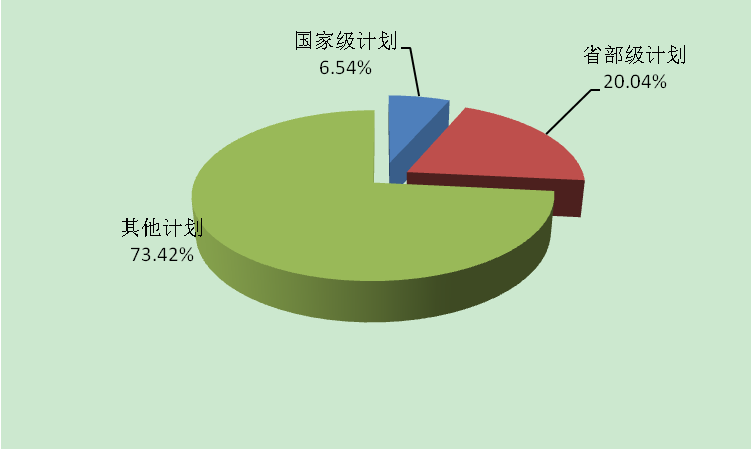 2019年度河南省登记的1956项成果中,来自国家级计划项目的有128项,占6.54%,来自省部级计划项目的392项,占20.04%,其它类项目1436项,占73.42%。