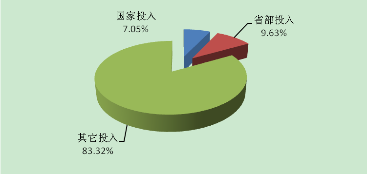 2019年度河南省登记的1956项成果中,共投入资金58.8828亿元,其中国家投入4.1506亿元,占7.05%;省部级投入5.6703亿元,占9.63%;其它资金投入49.0619亿元,占83.32%。项目资金投入主要来自于项目承担单位。