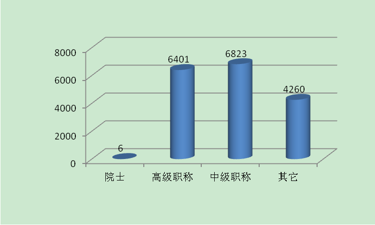 项目完成人中院士6人,占0.03%;高级职称6401人,占36.60%;中级6823人,占50.40%;其它4260人,24.36%。