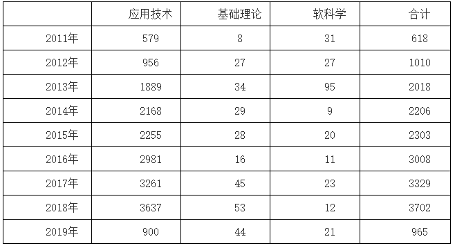 表1 2011-2019年四川省科技成果登记数量 单位:项