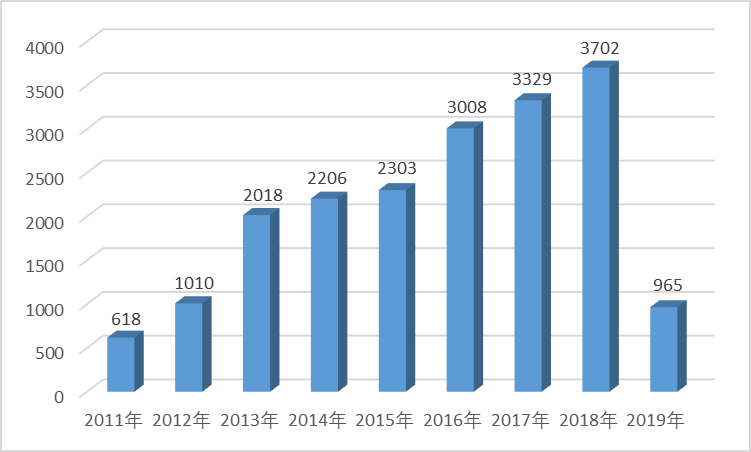 图1 2011-2019年四川省科技成果登记数量 单位:项