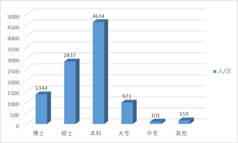 博士、硕士研究生4181人/次,占本年度成果完成人员总数的41.62 %;大学本科生4634人/次,占本年度成果完成人员总数的46.13 %。