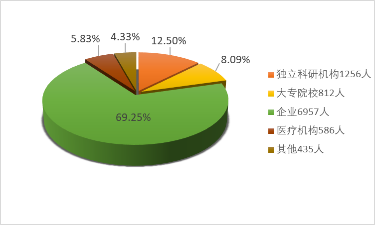 独立科研机构 1256人/次,占本年成果完成人员总数的 12.5 %;