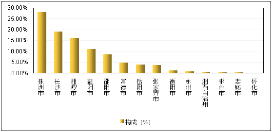 图2 湖南省2019年科技成果登记数量分布状况(按成果完成单位属地)